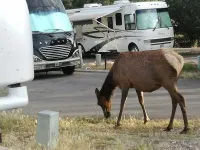 Wir probieren es mal direkt bei den Campgrounds und haben Glück. Obwohl das Schild "FULL" an der Einfahrt zum Trailer Village RV Park nicht gerade ermutigend ist. Ich fahre neben dem Registrierungsgebäude rechts ran. Vor uns sind noch zwei weitere RVs und hoffen auf Einlaß. Doch bevor wir aussteigen können, ruft uns eine freundliche Dame schon von weitem zu: "One night?" Ich nicke. "Well that's o.k. Do you need a full hook-up?" - Ich nicke erneut. "O.k. so come in, we have a beautiful site for you!"