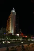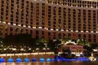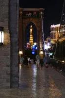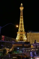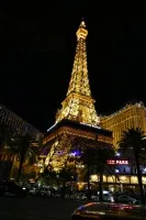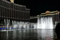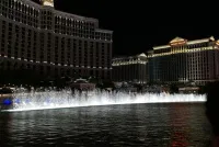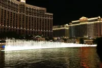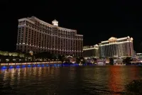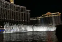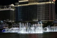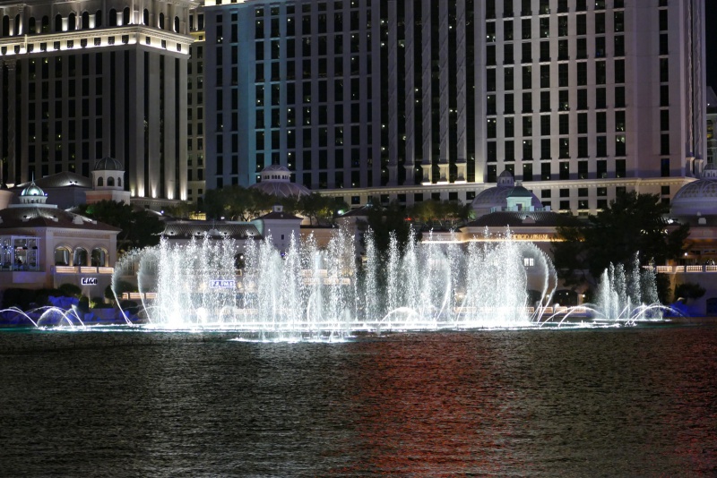 Die schöne Promenade vor dem The LinQ Hotel, Das Bellagio mit dem tollen Spektakel am Springbrunnen und das Paris Las Vegas Hotel.