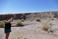Während der gesamten Fahrt kommen uns vielleicht zwei Autos entgegen. Wir bleiben immer wieder an schönen Aussichtspunkten stehen und genießen die völlige Abgeschiedenheit dieser Wüste, bei gut 40° Grad im Schatten.