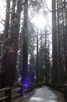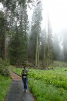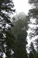 Wir beschließen, den Big Trees Trail zu erwandern und werden mit einer traumhaften Landschaft belohnt. Durch den Regen und den düsteren, trüben Nebel erscheint die Umgebung in einer magischen Atmosphäre.