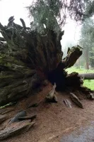 Vom Parkplatz führt der Trail zunächst über steile Stufen 175 Höhenmeter bergab, bevor wir dann vor dem  84 m hohen Ungetüm stehen. Der Riesenbaum misst stolze 11 m im Durchmesser.